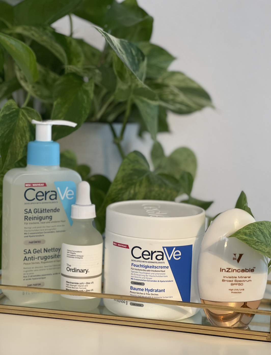 The Ordinary products are available at Douglas, the CeRaVe products are available at Müller, Manor and Pharmacy.